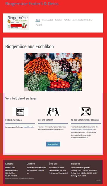Die Web-Site der Biobauern Enderli und Deiss in Eschlikon ist einfach und klar gestaltet. In Zeiten des Lockdown stehen im Zentrum Informationen zu Kauf- und Abholmöglichkeiten und das Bestellformular.