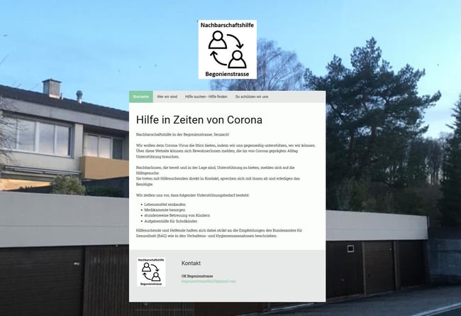 Das nächste Beispiel ist eine Web-Site, die ich für einen Quatierverein erstellt habe. Auch hier stand im Zentrum die einfache Struktur. Diese Web-Site wurde mit einer kostenlosen Version von Jimdo erstellt.